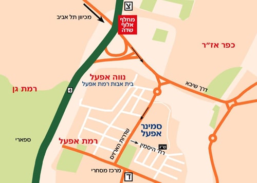 היות ובעיר רמת גן קיימים 2 רחובות בשם זהה: "היסמין" יש לכתוב ב Waze "סמינר אפעל". המשיכו לחניון 5 וגשו לבית זיוה כניסה מזרחית (אזור הדשא)